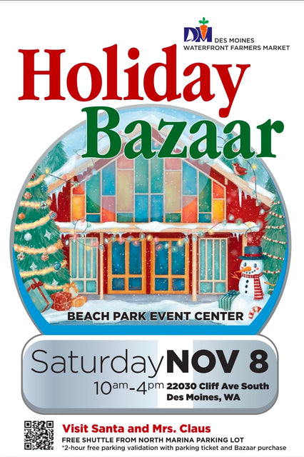 Though the summer season has ended, we are not done yet. We invite you to join us for our annual Holiday Market on Saturday, November 8th, from 10AM to 4PM at the Des Moines Beach Park Event Center. It is the perfect way to celebrate the holidays while supporting local businesses.